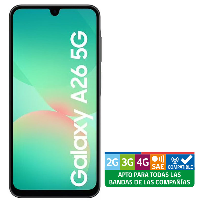 Galaxy A26 5G con un diseno delgado y plano con una elegante parte trasera de cristal. La pantalla de 6,7 pulgadas cuenta con biseles delgados para una experiencia visual mas envolvente. Disfruta de la tranquilidad de una durabilidad fiable, que incluye una clasificacion IP67 de resistencia al agua y al polvo.Precio Normal: $ 249.990* Precio Válido Solo Sitio Web - CLARO