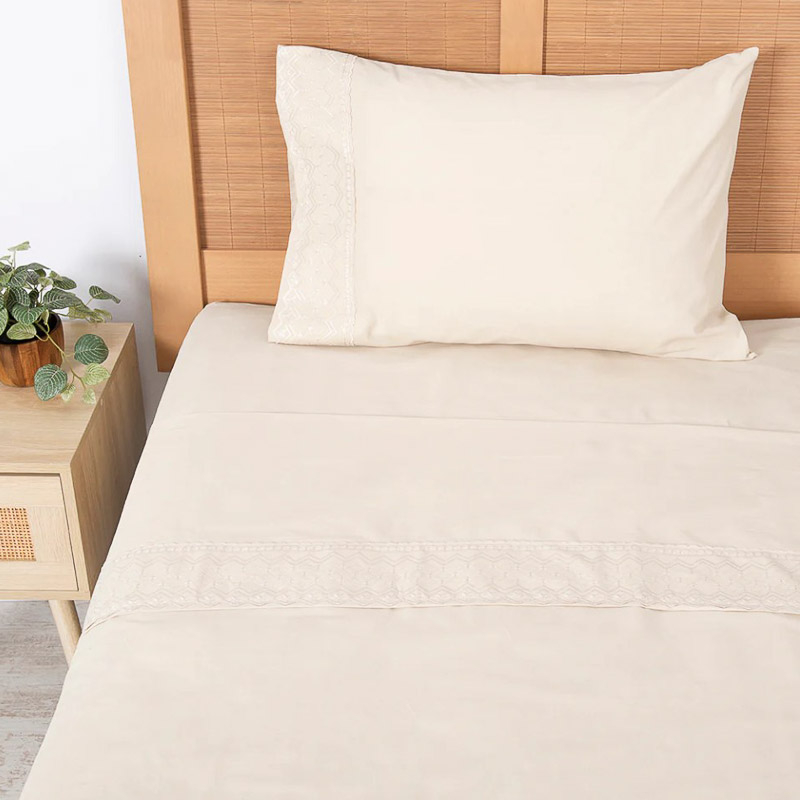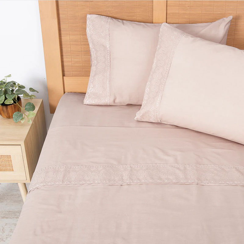 Set de sabanas con delicados estampados, compuesta por 50% de algodon y 50% poliester, este material